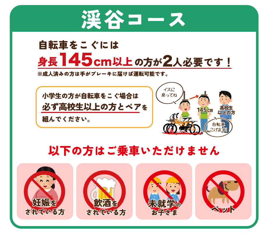 自転車をこぐ方2名は、共に身長145cm以上が必要です。