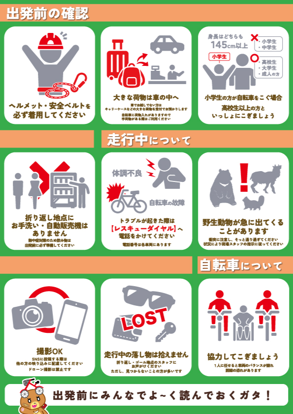 自転車に乗れる服装でお越しください。